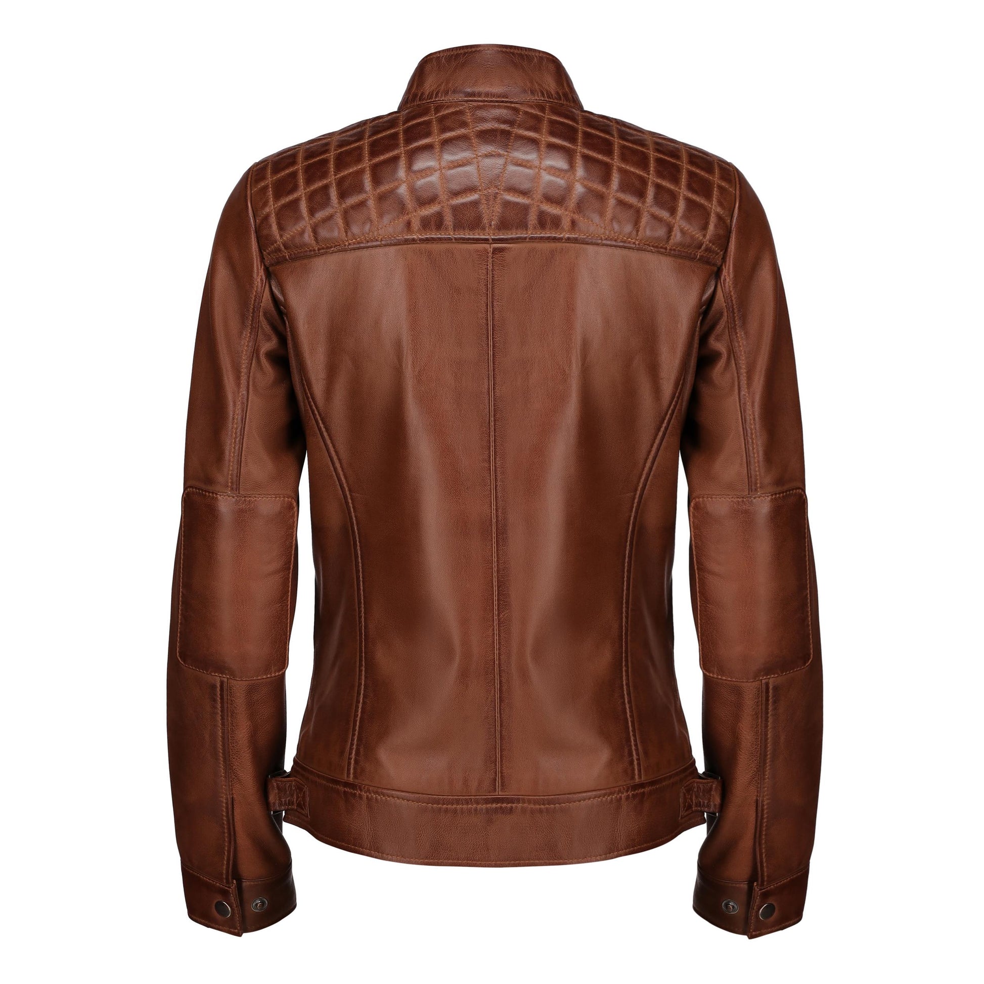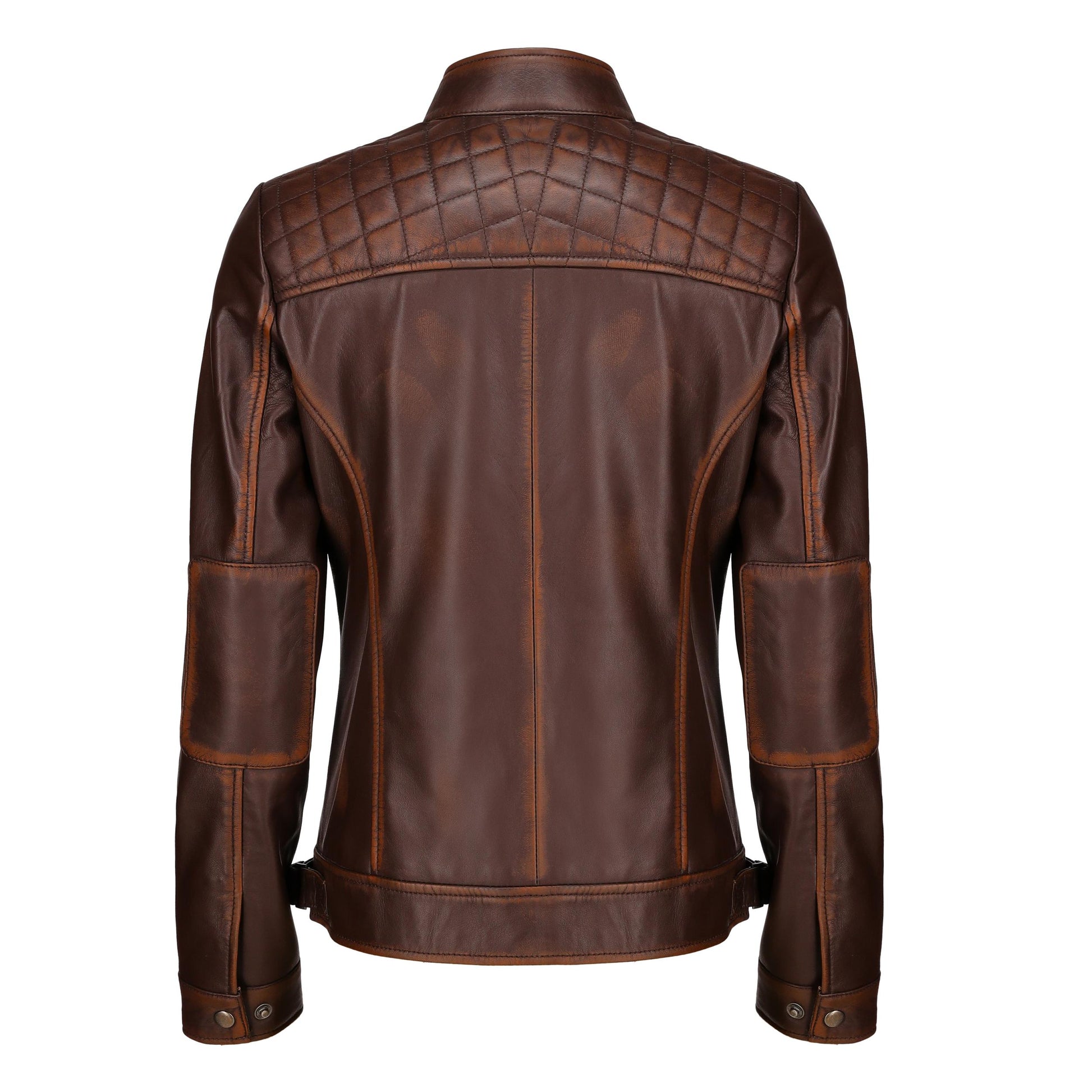 Café Racer Leather Jacket Women - Zip Up Moto Biker Style Casual Fashion Real Lambskin Women's Leather Jacket