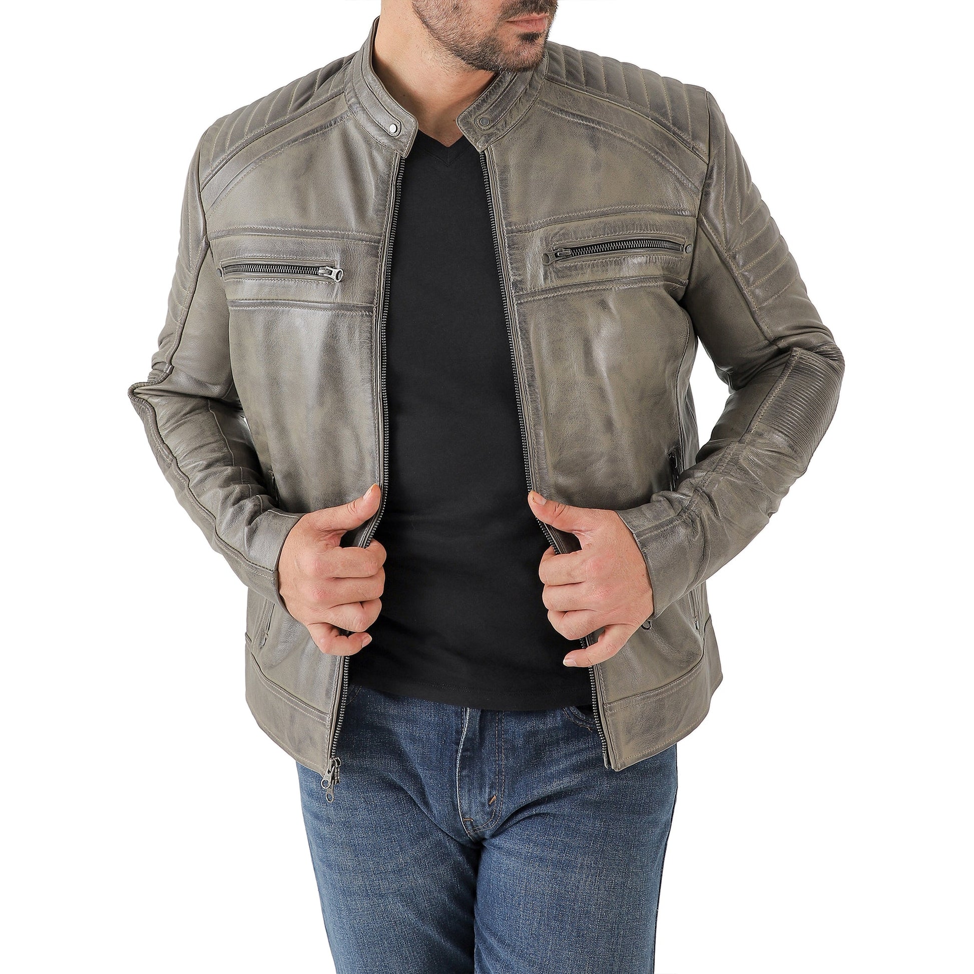 Jild Men's Cafe Racer Biker Leather Jacket