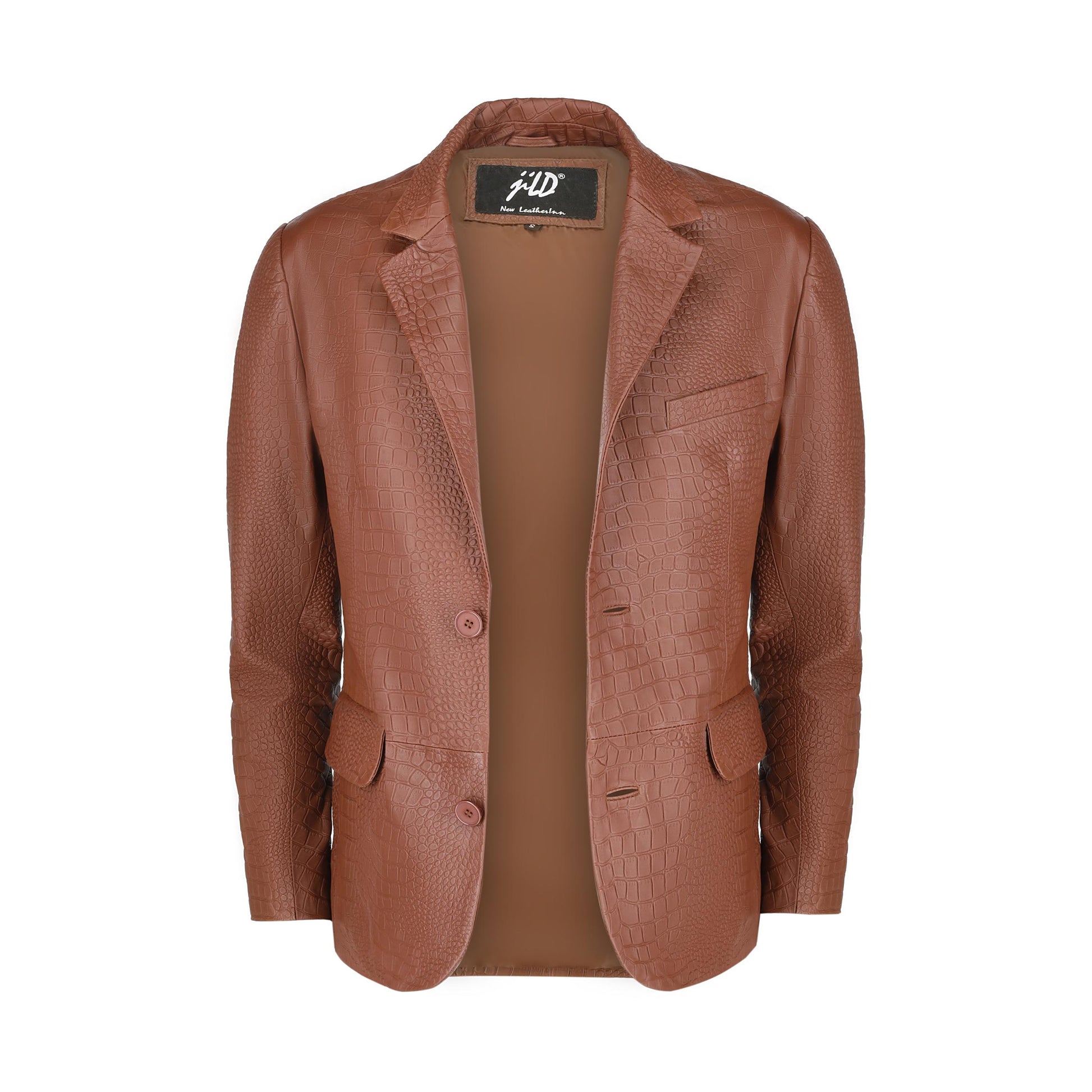 Add bold style to your wardrobe with our Men’s Croco Printed Tan Brown Leather Blazer. Made from real leather, this blazer features a unique crocodile-style texture and a warm tan brown color that stands out. It's the perfect mix of classy and edgy.