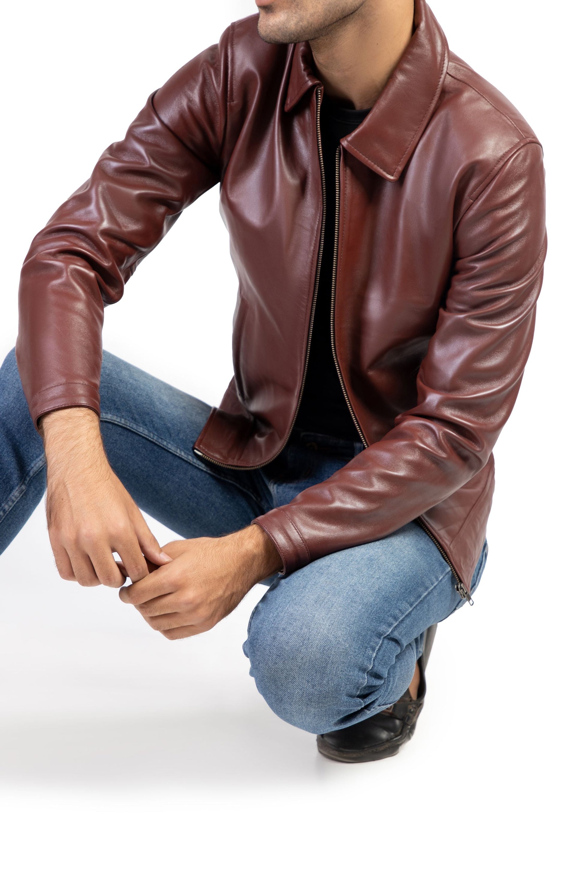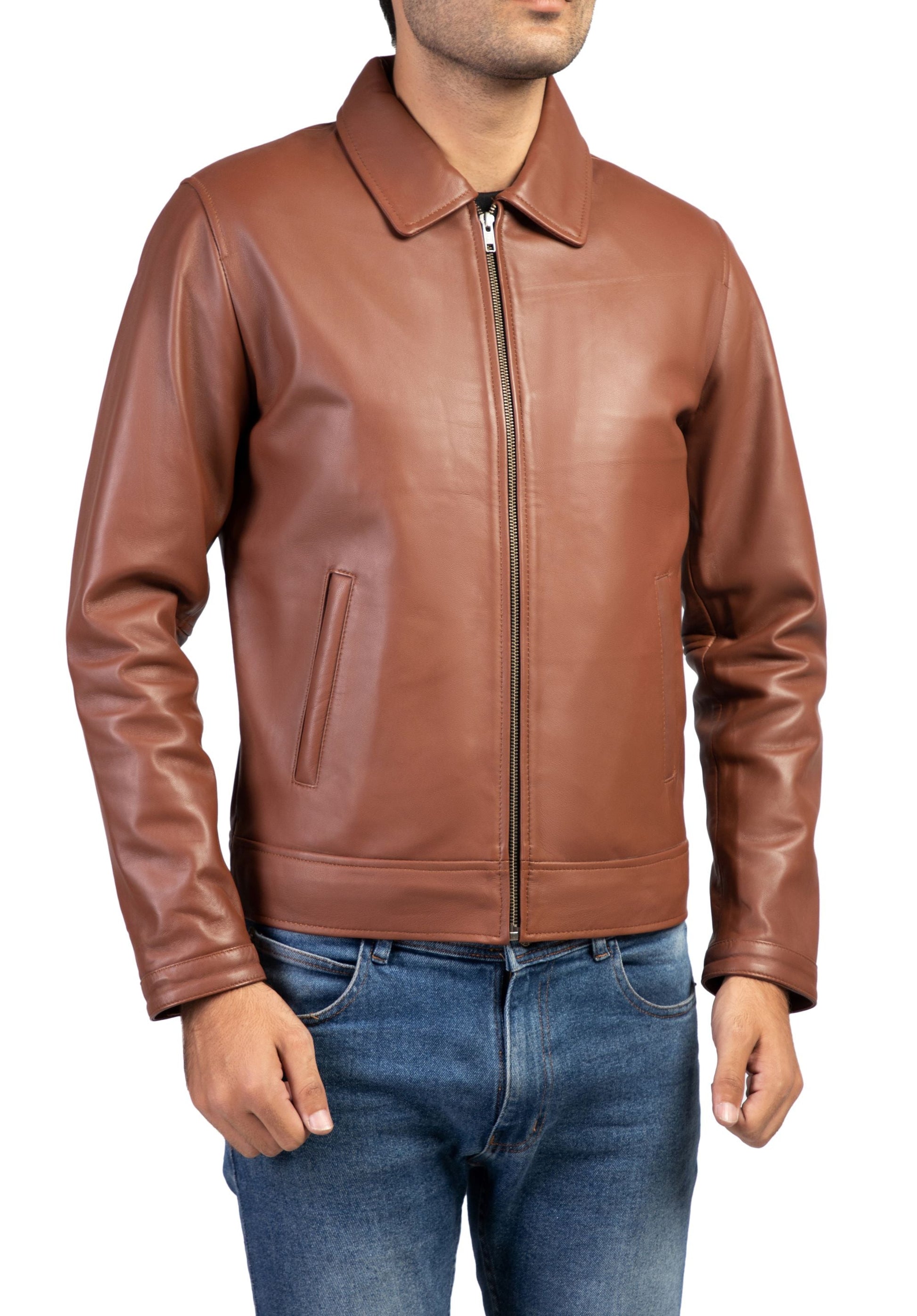 Men's Harrington Collar Shirt Premium Leather Jacket