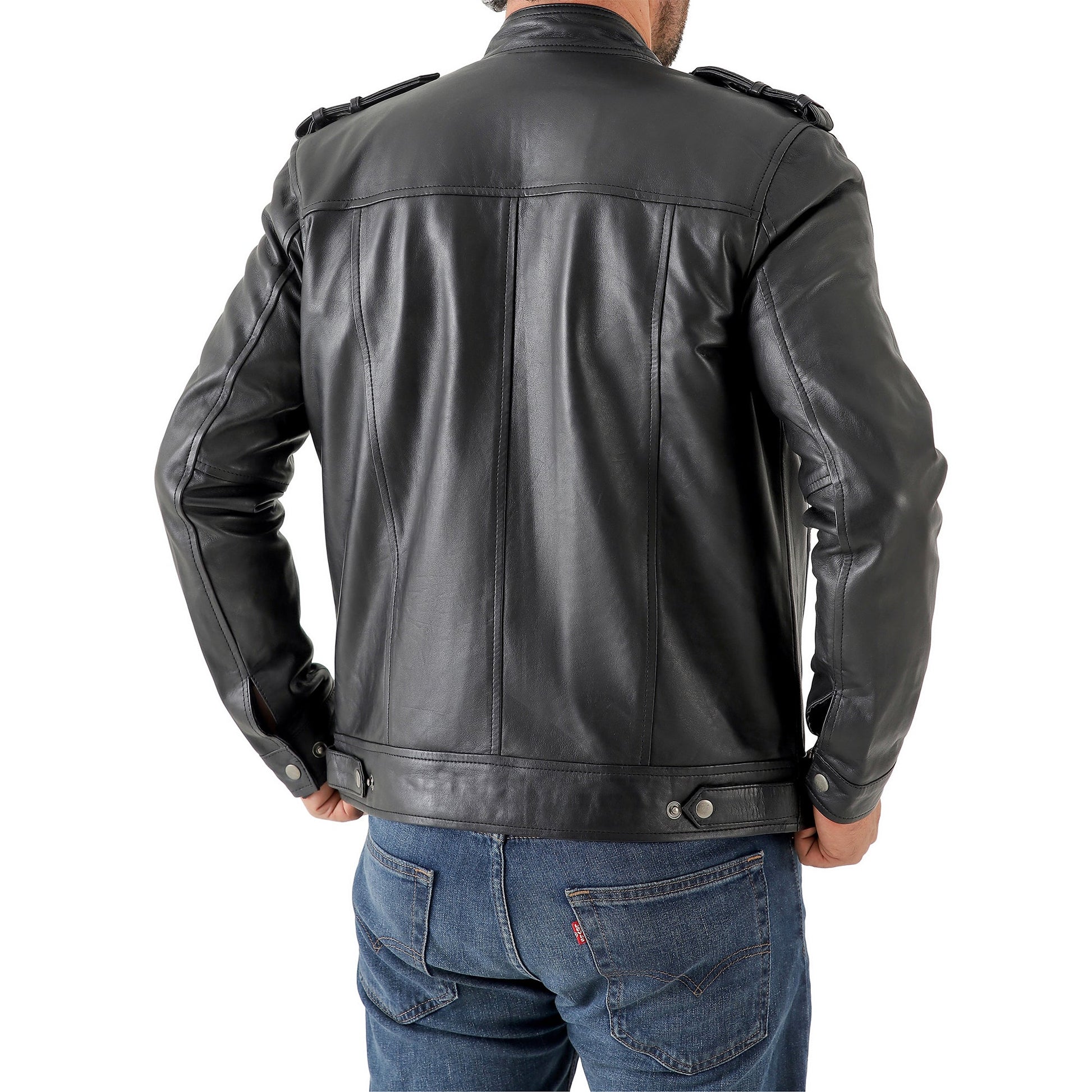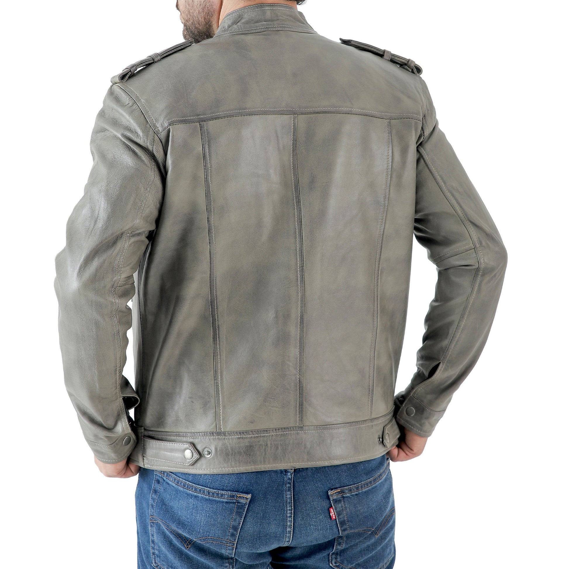 Men’s Waxed Leather Biker Jacket – Vintage Style with Shoulder Epaulettes