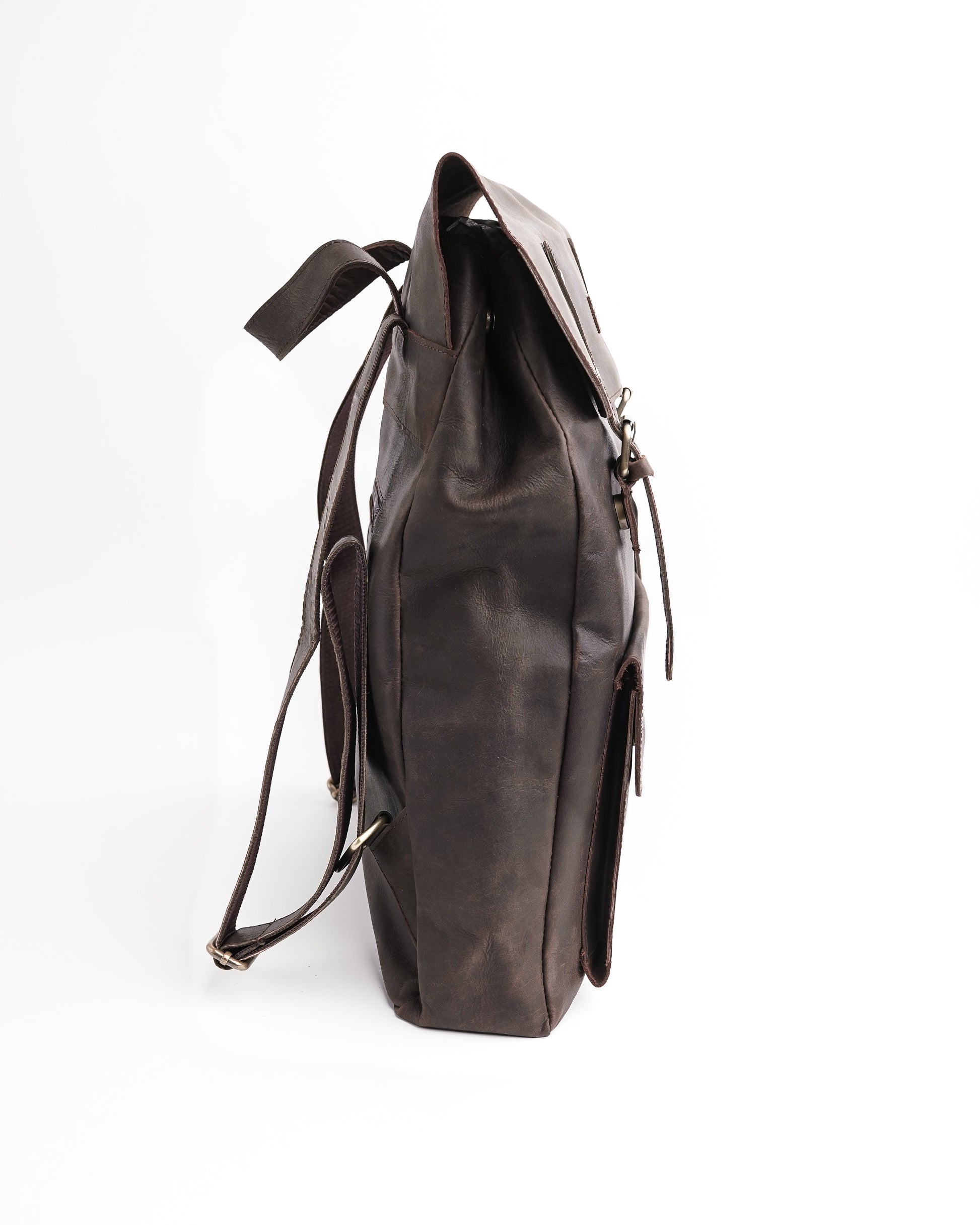 Nomad Vintage Leather Backpack is a timeless and durable leather bag. Made from high-quality leather, this backpack is designed to last a lifetime and will only get better with age. The classic design of the backpack features a spacious main compartment that can accommodate all your essentials, including a laptop, books, and other daily necessities. There is also pocket on the front and side for storing smaller items such as your phone, wallet, and keys. The vintage look of the leather gives the backpack a unique and stylish appearance, making it perfect for any occasion. Whether you're heading to work, school, or embarking on a weekend adventure, this backpack is sure to be your go-to choice.
