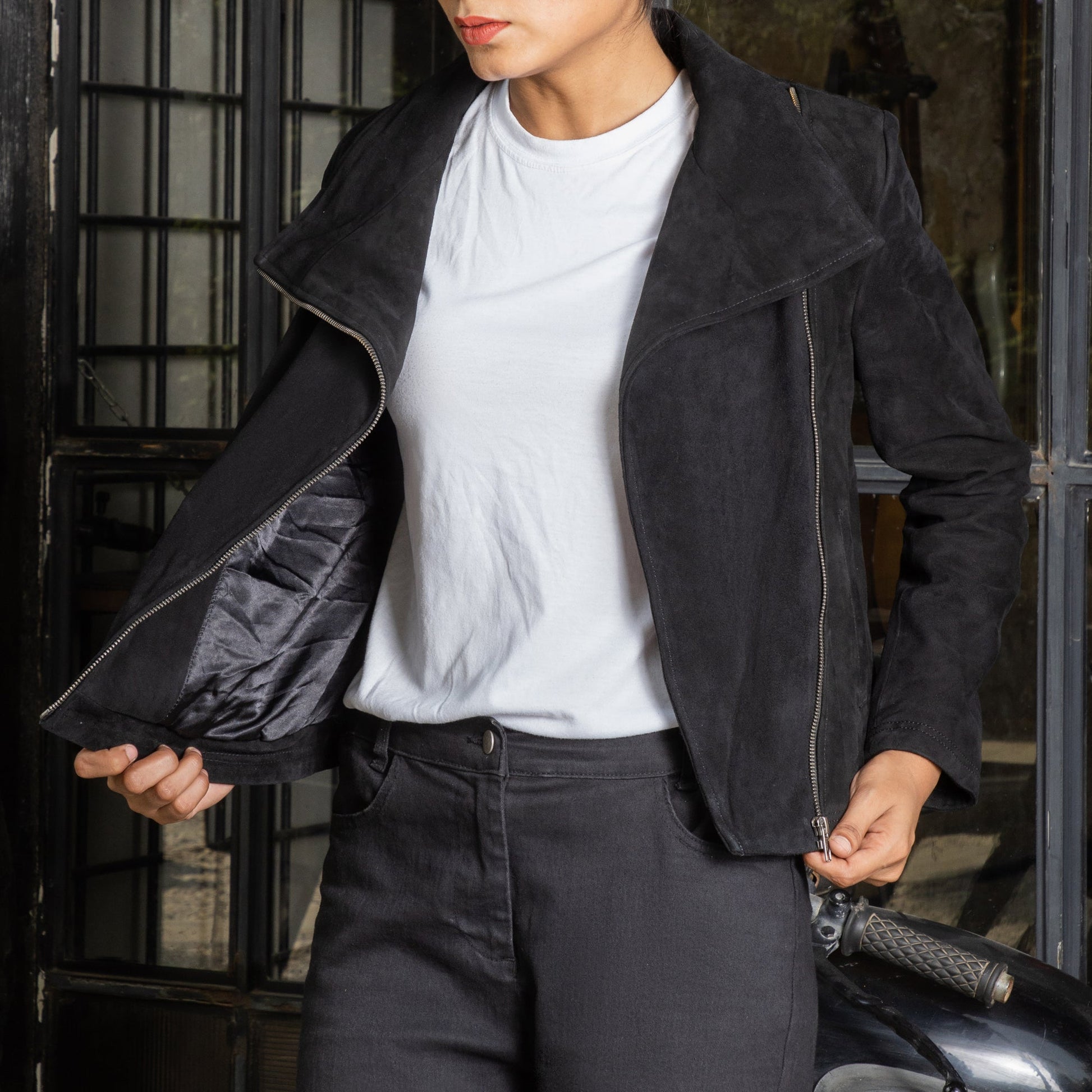 Turn heads with our Real Suede Women’s Biker Leather Jacket, featuring a bold asymmetrical design and premium suede finish. Crafted from 100% real suede leather, this jacket combines edgy biker style with luxurious material, making it the perfect statement piece for any wardrobe. The asymmetrical zipper front closure adds a distinctive touch, while the tailored fit flatters your silhouette, ensuring you stay chic and comfortable.
