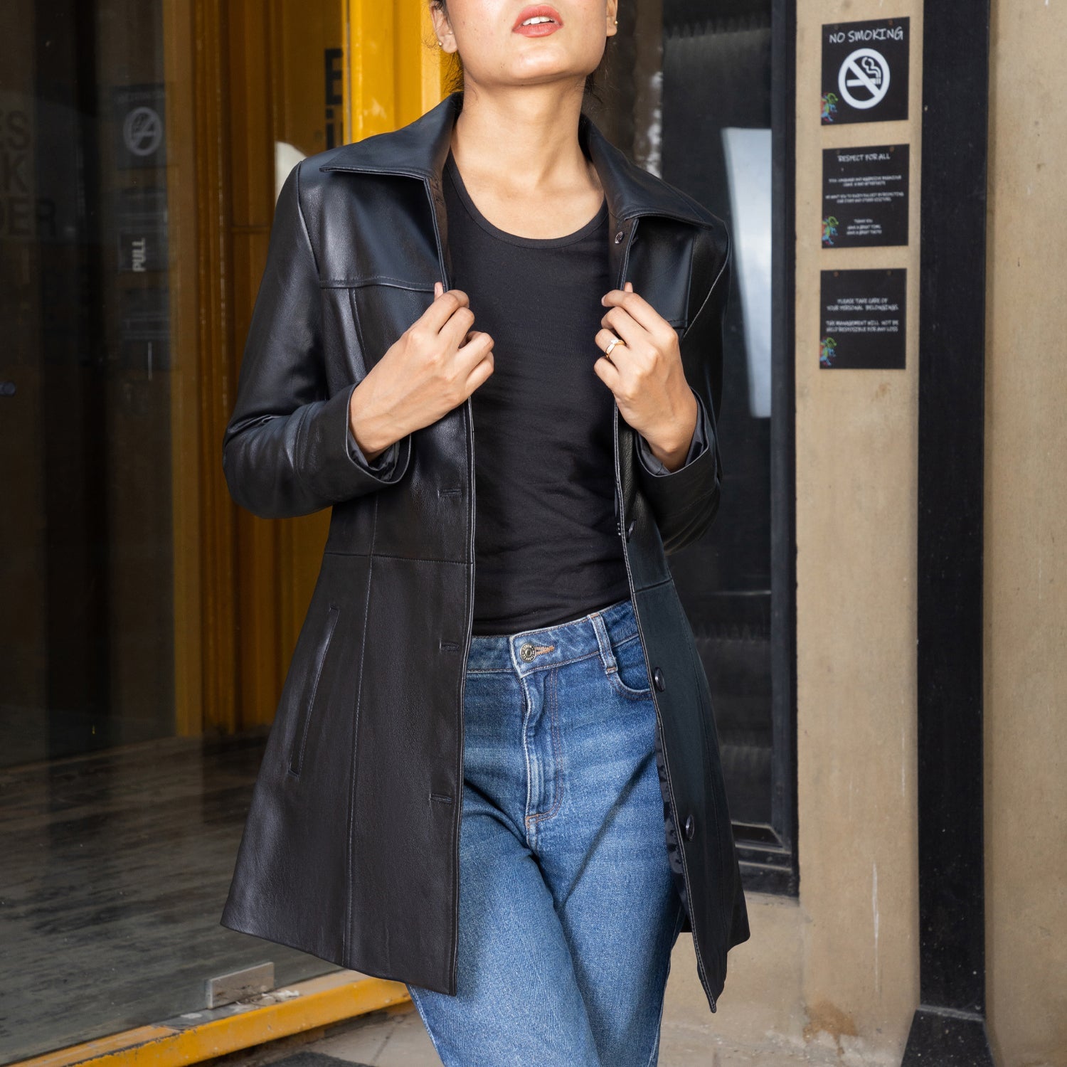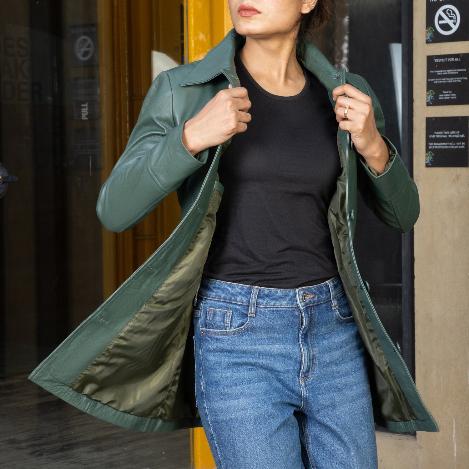 Women’s Real Leather 3/4 Length Car Coat, designed to offer both elegance and functionality. Crafted from 100% premium real leather, this coat delivers a sleek, minimalist look while providing warmth and comfort. The 3/4 length offers extra coverage, making it perfect for layering during cooler months, while the tailored fit ensures a flattering silhouette. Ideal for both casual wear and formal occasions, this car coat is the ultimate blend of luxury and practicality.