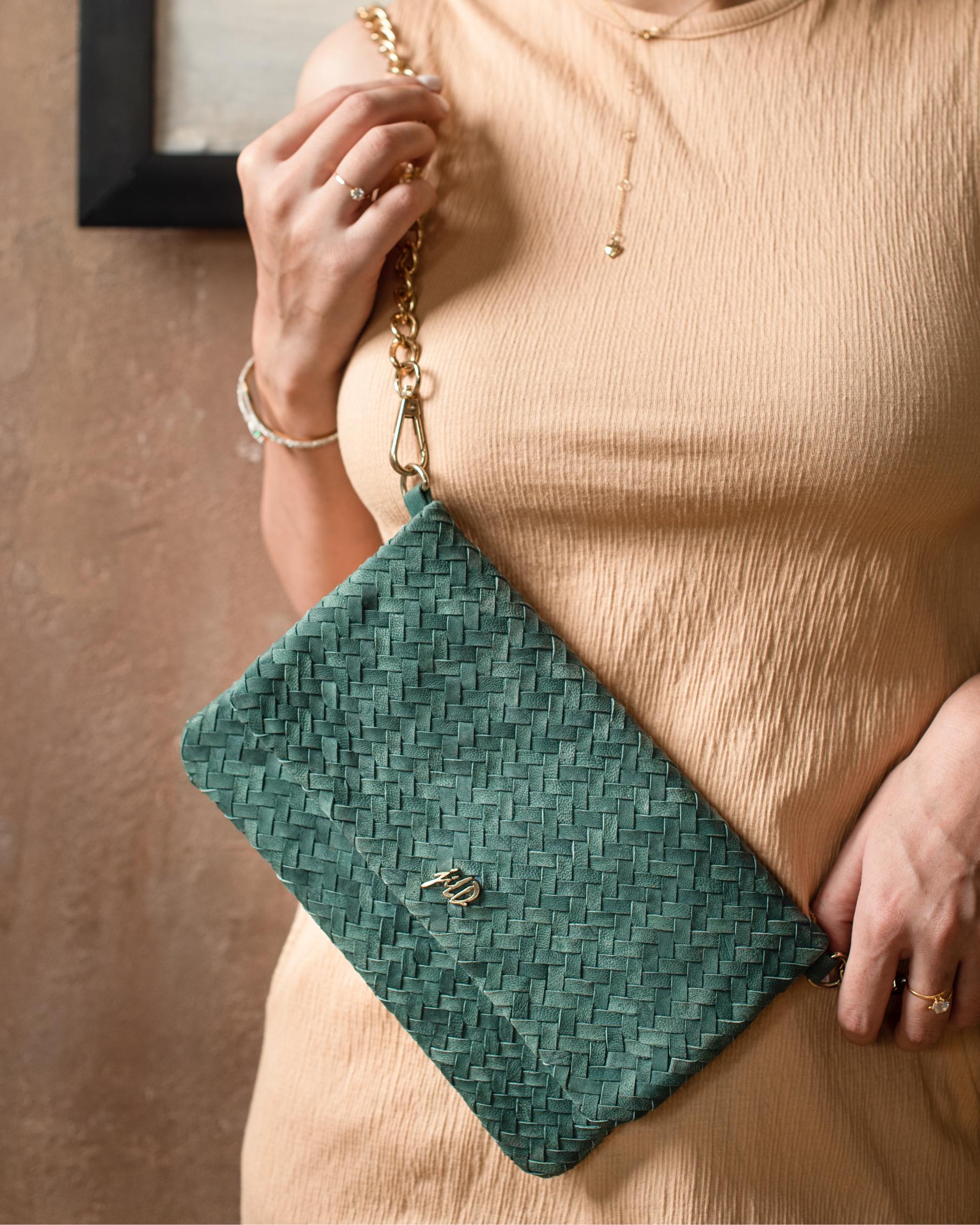 Woven Dreams By Jild is a masterpiece that captures the essence of artisanal elegance. Jild crossbody woven leather bag will surely add a touch of dreamy sophistication, while the detachable crossbody strap provides options for styling with your outfits. It's not just a clutch; it's a manifestation of handwoven dreams in genuine leather luxury
