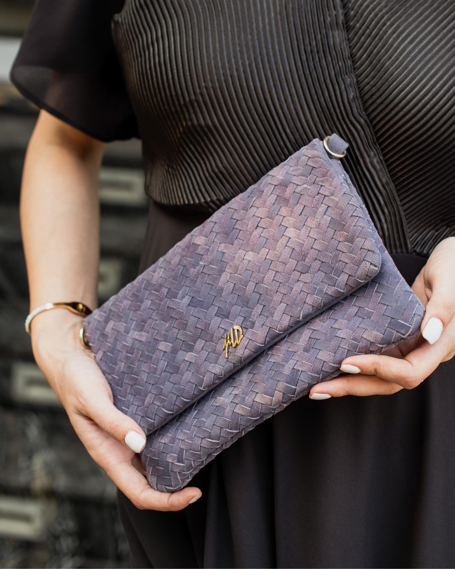 Woven Dreams Fold Over Cross Body Leather Clutch